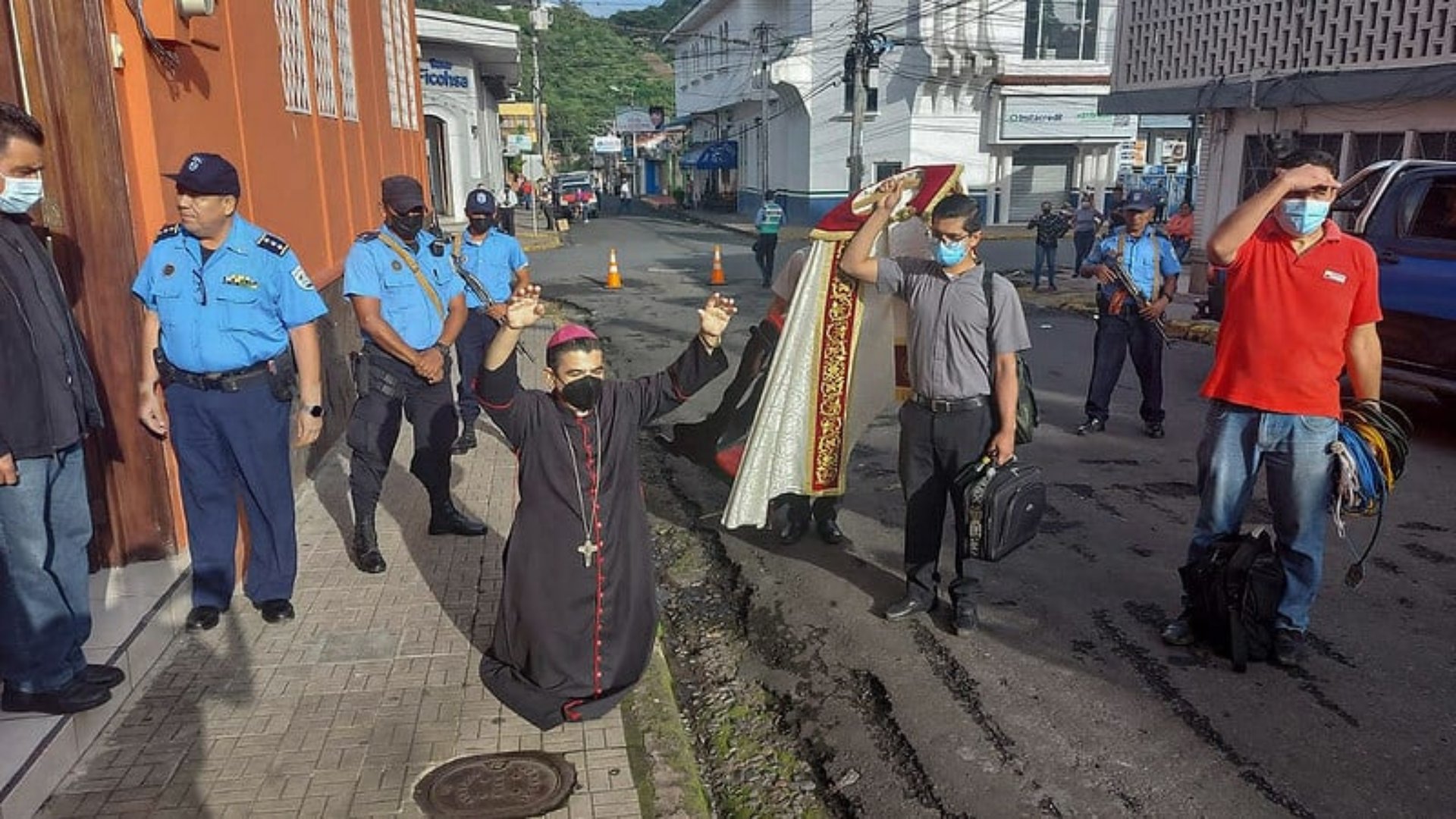 Monseñor Álvarez reza en la calle para que se retire cerco policial de la curia de Matagalpa